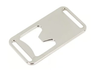 Metalowy otwieracz do butelek w formie płaskiej karty, wykonany z wytrzymałego materiału. Kompaktowy design umożliwia łatwe przechowywanie w portfelu lub przymocowanie do paska. Dzięki specjalnym otworom może być również noszony na smyczy, co zapewnia wygodny dostęp w każdej sytuacji. Idealny jako praktyczny gadżet na co dzień.